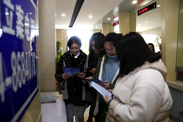 在讲解员的引领下,大学生们参观了法院文化建设,走进诉讼服务中心、书香法院文化长廊等场所,更加细致的了解法院在诉讼服务、书香法院、信息化建设和司法服务等方面的工作情况,感受司法新气象。