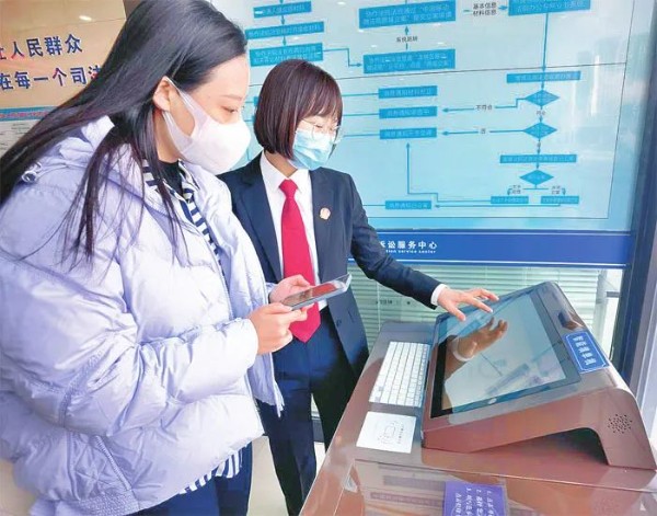 走进诉讼服务中心,能够看到,中心设有覆盖立案服务全流程智能设备,虚拟导诉软件实现通过真人影音导引服务功能分区,三维地图智能引路系统提供前往法庭具体位置路线;设置智能填单机,当事人可通过扫描二维码,进入微信或填单设备,根据智能提示填写《起诉状》等14个标准法律文书,并自行打印;设置自助立案机,当事人可自助办理立案服务;设置诉讼服务查询一体机,当事人可查询诉讼文书样式、法律法规、法院部门、办案法官、案件办理节点等信息;设置法官沟通平台一体机,当事人可电话连线案件承办法官或短信留言至法官手机,畅通当事人与法官沟通渠道;设置材料智能收转柜,当事人可随时向法院提交材料,承办法官可输入密码或刷脸刷卡收取材料。通过智能导、智能写、智能立、智能查、智能联、智能转的“六智”服务,实现诉讼服务一次性完成。