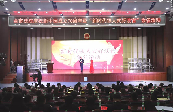 为热烈庆祝新中国成立70周年、大庆油田发现60周年和大庆建市、大庆中院建院40周年,充分发挥先进典型示范引领作用,强力推动“不忘初心、牢记使命”主题教育迅速掀起热潮,9月27日,大庆中院庆祝新中国成立70周年暨“新时代铁人式好法官” 命名活动在大庆中院举行。黑龙江省高级人民法院党组书记、院长石时态为活动发来贺词,市委常委、政法委书记陈宏伟,省法院政治部副主任张正义等领导同志出席活动,市中院党组书记、洛大雨现场致辞。