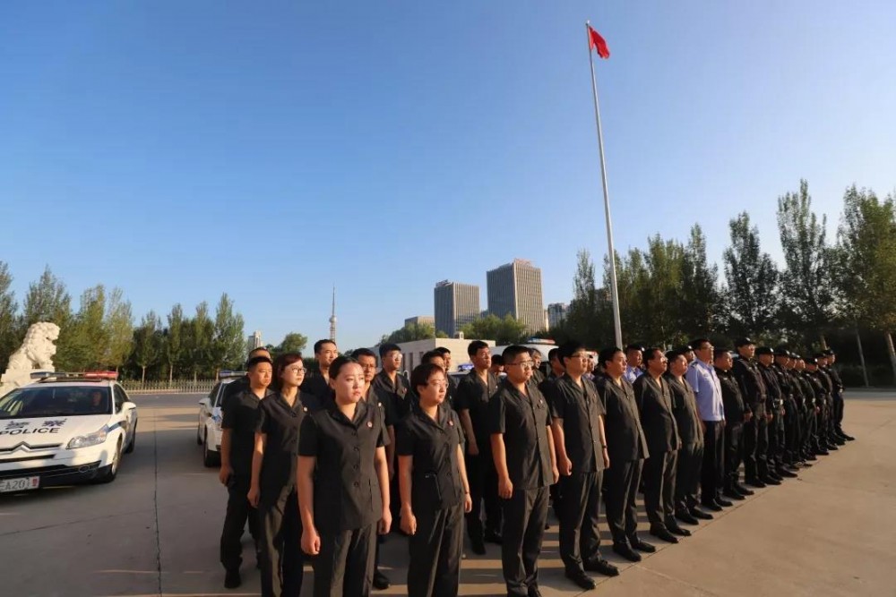 8月1日清晨5时30分,全体参战干警在大庆中院列队集合,总指挥谢洪程局长作最后行动部署。