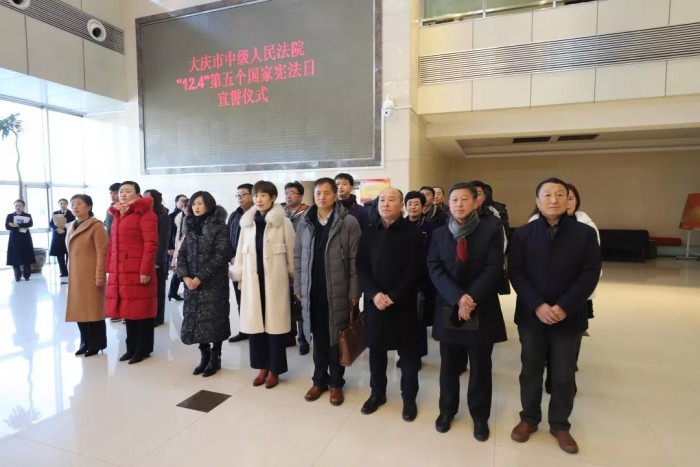 12月4日是我国第五个“国家宪法日”,大庆中院邀请市人大代表、政协委员、媒体记者和东北石油大学师生代表等社会各界人士走进法院、走近法官,见证法官宣誓,感受司法氛围。大庆中院党组成员、政治部主任徐玉山陪同参观。