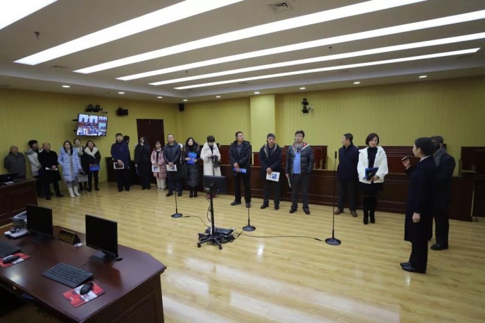 受邀人员见证了大庆中院法官向宪法宣誓仪式。法官们身着法袍,高擎右拳,面对国旗庄严宣誓,声音响彻整个阳光大厅。“亲眼目睹宣誓仪式,让我深受震撼,体会到法官们深深的使命感、责任感、荣誉感,并在他们的庄严承诺中感受到司法为民、公正司法的坚定信念”。基层组织代表金威感慨道。