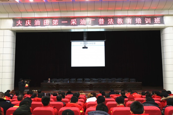为了迎合第三个国家宪法日,大庆市萨尔图区人民法院组织四名刑事法官来到大庆油田有限责任公司第一采油厂,为该厂500余名员工宣讲法律常识,让普法宣传工作走到生产第一线。