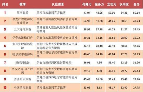 2018上半年黑龙江十大旅游局微博权威发布 五大连池位列第三