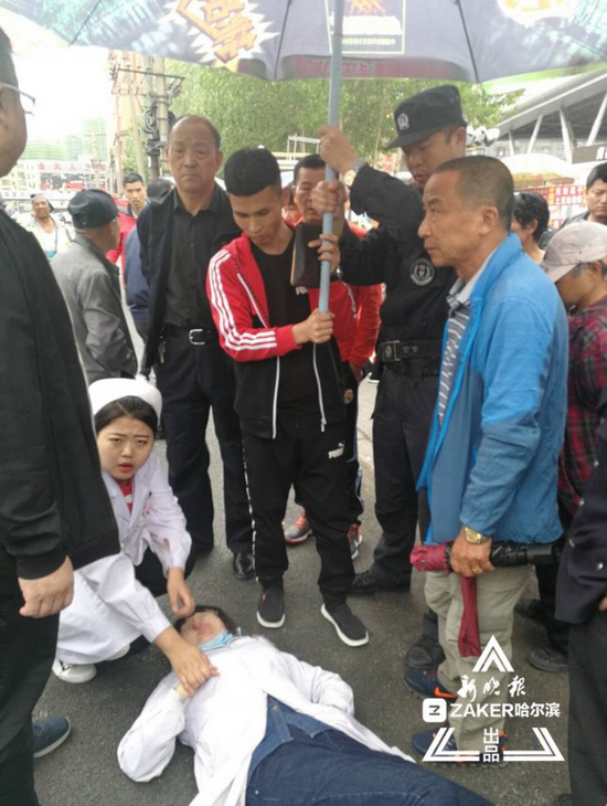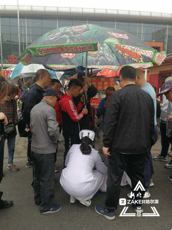 10 日 11 时 40 分许,巡特警支队巡逻四大队特 26 车组在道外客运站广场巡逻时,发现承德街上有大量群众聚集,车组长田公迅速带领民警到达现场,发现一名白衣女子躺在地上,表情痛苦,旁边一辆 “ 港田车 ” 停在路边。