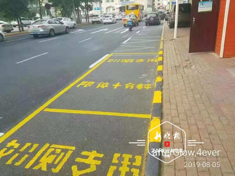 5 日,记者在河洛街看到,一处公共厕所门前的车行道上用黄色标线施划了 “ 如厕专用车位 ”,车位内写着 “ 如厕专用,限停 10 分钟 ”。