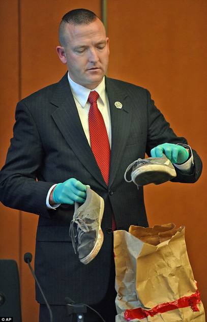 Chism的同学和老师感到非常震惊,因为这个孩子平时很安静也很有礼貌。这个少年父母分居,他母亲说,自己儿子“深受大家疼爱”,没人能理解他为什么这样做。图为周三,在萨勒姆高等法院审判现场,助理检察官Kate McDougall介绍物证,用来运送尸体的垃圾回收箱。