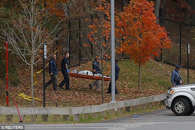 警察从树林里运出Ritzer的尸体,2013年秋天,下课后的几个小时后,她的尸首在这里被发现。
