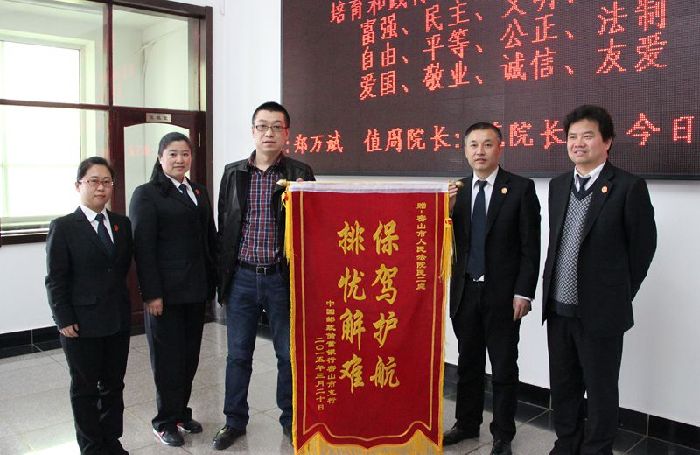 近日,密山市邮政储蓄银行一行三人,带着锦旗和感谢信来到密山市人民法院。“多年来,密山法院无论是在我们的案件诉讼、执行过程中,还是对企业进行法律指导、进企业普法宣传等方面,都给予我们大力的支持和帮助。在此,我代表邮储银行全体员工向密山法院和民二庭的法官们表示深深的谢意。”刘行长说。