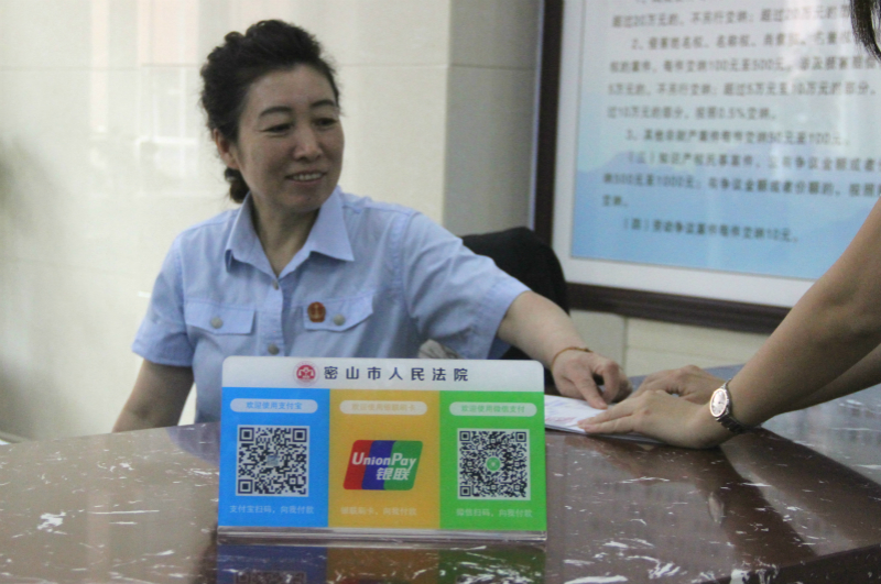 原来,密山法院为了方便群众缴纳、退还诉讼费,全面开通了银联卡刷卡缴费、支付宝企业收款、微信公众号收款功能,当事人缴纳诉讼费用时,不用携带现金,仅需一张银联卡或一部智能手机,一两分钟内就能完成缴费。