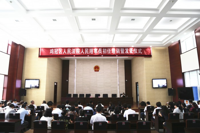 7月22日上午,鸡冠区法院举行了增补人民陪审员初任培训暨证书颁发仪式,对新任命的46名人民陪审员颁发任命书和进行初任培训。