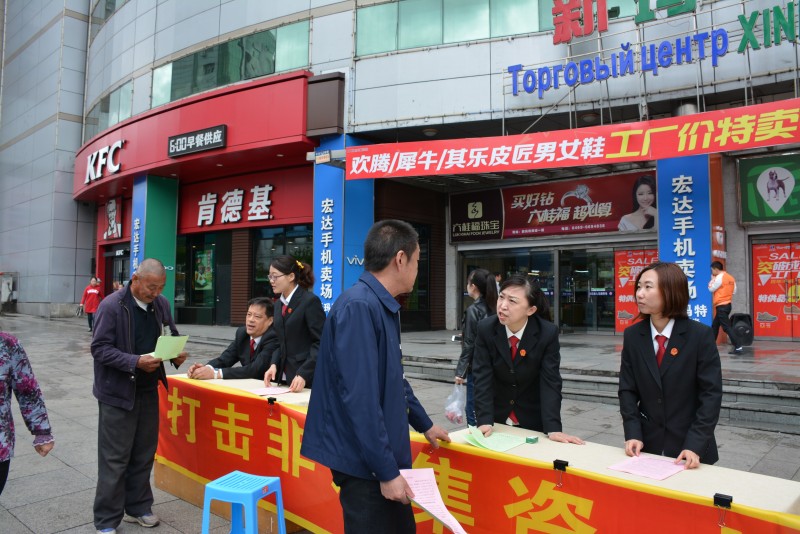 近日,双鸭山市中级人民法院为严厉打击非法集资,维护社会稳定,保护广大人民群众的切身利益,开展防范非法集资宣传月系列活动。他们在中院诉讼服务大厅通过24小时滚动屏幕播放宣传标语,悬挂横幅,在人群密集区域设置宣传咨询点,法官以案说法,发放讲解宣传资料等系列活动。