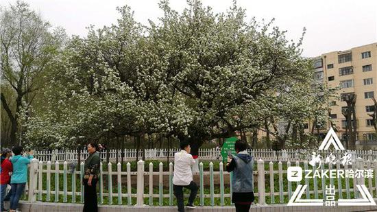小长假第一天 哈尔滨道外古梨园132岁老梨树繁花开