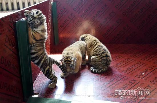 据了解,目前产崽的老虎都是头次产崽的年轻虎妈,没有育儿经验,所以30多只新虎全部由人工喂养,只有3窝小虎有虎妈自己喂养。虎林园东北虎生育高峰期将出现在5-6月份,下半年也会有少量母虎产仔,下半年也会有少量母虎产仔,预计虎林园全年将添丁进口约百只。