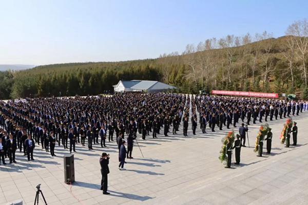 公祭仪式上,干警们同全体参加人员现场合唱了《中华人民共和国国歌》,全体人员脱帽、肃立,向纪念碑鞠躬,少先队员们献唱《我们是共产主义接班人》。向烈士敬献花篮后,干警们依次瞻仰了革命烈士纪念碑并敬献鲜花。