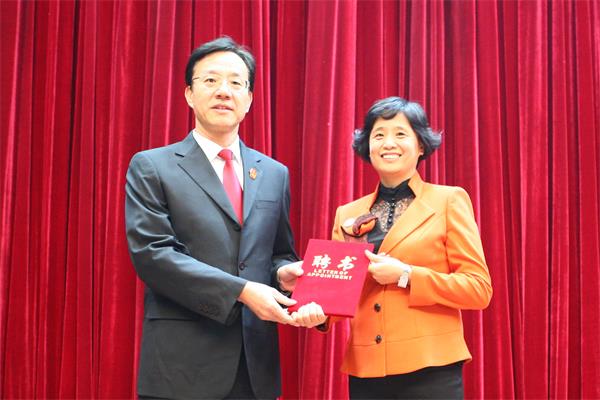 讲座开始前,张述元为尹梅教授颁发了黑龙江省法官学院客座教授聘书。