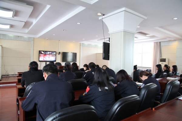 农垦中级法院组织干警集中观看黑龙江省第十三届人民代表大会第一次会议开幕会