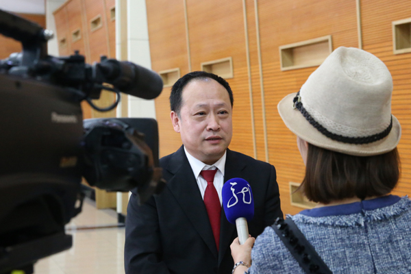 省法院行政庭庭长马国接受记者采访。 朱丹钰 摄