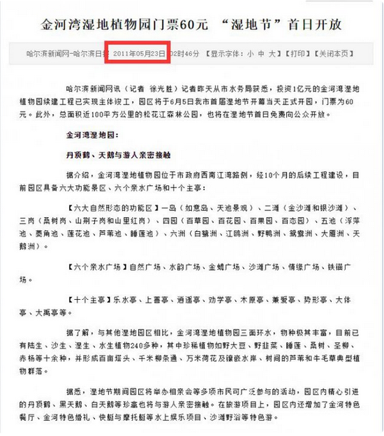 据哈尔滨日报记者报道,开园整七年的金河湾湿地公园,于本月 6 日发布公告,并已于 10 日停止经营。