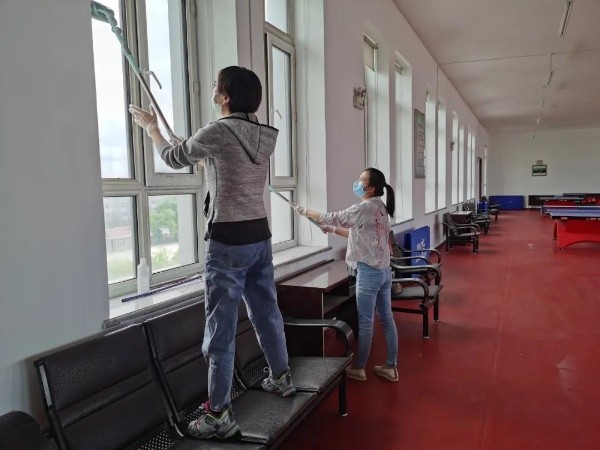 参加活动的青年党员、入党积极分子分工明确,各司其职,对离退休干部活动中心乒乓球室进行了全面的清扫,打造干净整洁有序的卫生环境,最大限度减少细菌、病毒的滋生和传播,为当前新冠肺炎疫情防控助力。