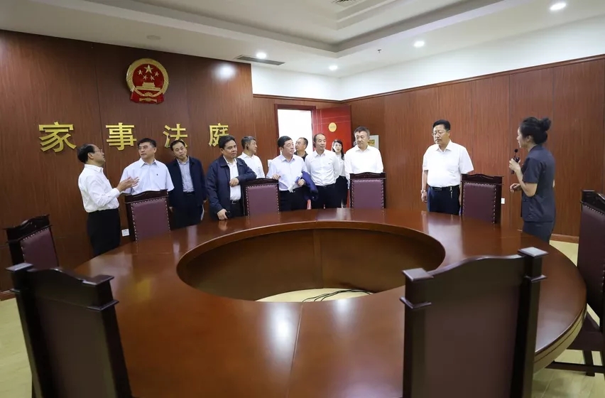 伊春市纪委监委考察人员在讲解员的引领下,相继参观了诉讼服务中心、科技化法庭、家事审判区、荣誉室、执行指挥中心等场所。