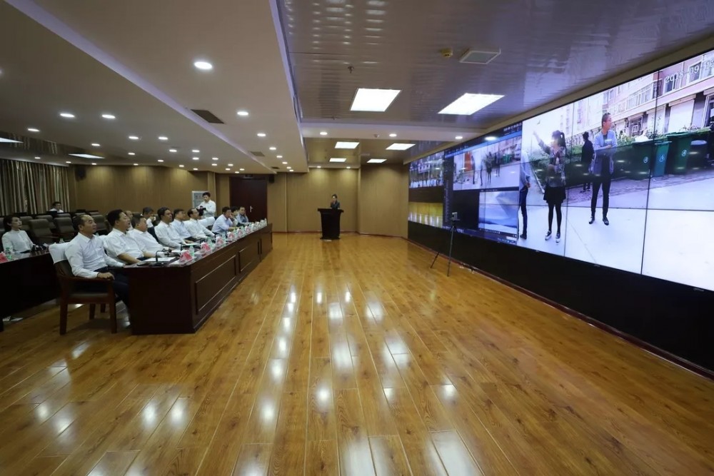 在执行指挥中心,执行指挥长通过单兵系统连线肇源、高新区法院等多个执行现场。副院长赵亮就智慧法院建设作了详细介绍,并就信息化建设在诉讼服务、执法办案、审判管理中的深度运用进行了系统讲解和现场演示。
