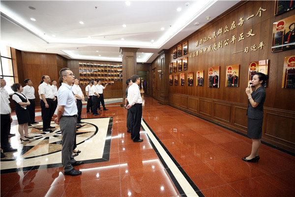 作为黑龙江省一个重要的法治文化品牌和法治教育基地,省法院“公众开放日”的影响日益深远。2019年6月20日和7月18日,南航黑龙江分公司两次组织员工到省法院参加“公众开放日”活动,作为开展“不忘初心、牢记使命”主题教育的一项重要活动,让员工更好地运用法治思维和法治能力服务航空工作。省法院党组成员、巡视员邹鹏,副厅级审判员王铁男分别陪同参观。