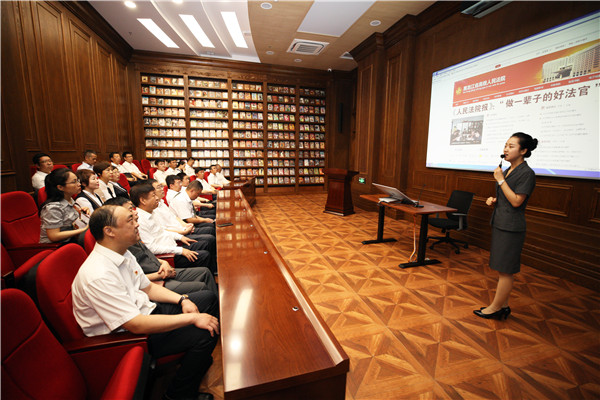 大家还相继参观了院史馆、图书馆、新闻中心等场所,并在审委会会议室观看了微电影《我是法官》。参观者说,这部微电影拍出了每一位法官的初心和无悔,他们用行动践行诺言,用真心对待百姓,法槌铿锵,不辱使命,满满的正能量。