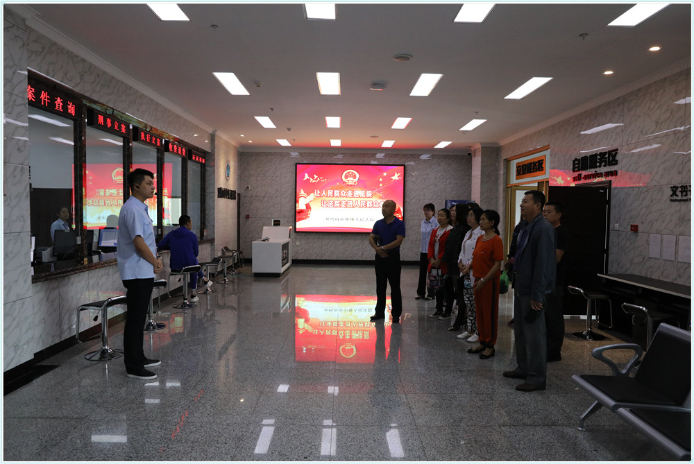 讲解员对诉讼服务中心、科技法庭、执行指挥中心和图书馆服务设施和功能进行介绍,教师们了解了有关智慧法院建设、审判流程及攻坚“基本解决执行难”工作情况,对法院各项工作有了更加直观全面的认知。