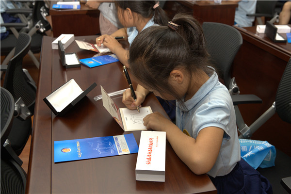 参观结束,有的同学在留言卡上写到:“长大后我也想成为一名法官”、“希望开放日越来越好”,有的在留言卡上认真地画了一个大大的法徽,同学们心中感慨万分,还有两位学生代表进行了发言。