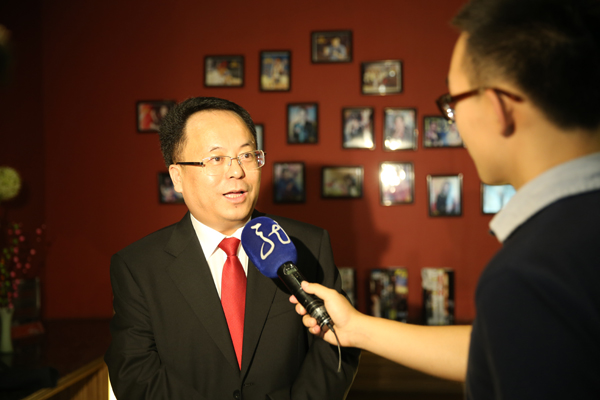 省法院党组副书记、常务副院长王树江在首映式上接受媒体采访。朱丹钰 摄