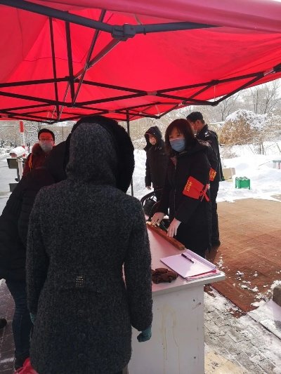 “同志,请您在这里登记!”2月22日8时,天空还在飘着雪花,哈尔滨市南岗区长江社区吉星商住城小区出口,黑龙江高院审监一庭党支部书记、庭长姜春艳就已经戴着口罩和护目镜,认真地对进出小区的车辆、人员进行查验、登记着。