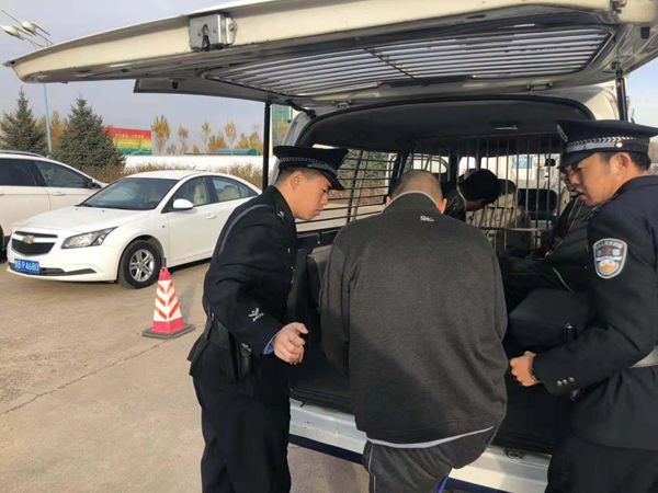 齐齐哈尔市富拉尔基区法院押解犯人前往庭审现场