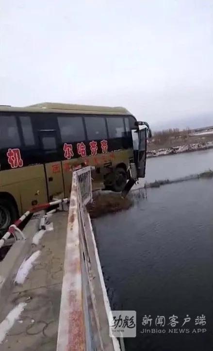 原标题:惊险!惊险!齐齐哈尔一大巴冲出桥栏→车身一半悬空在外摇摇欲坠!