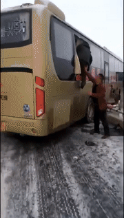 29日早6时40分,白某驾驶一辆大客车行驶到齐齐哈尔齐富公路仙台墓园东侧滩桥上时,前方有一辆面包车打滑,白某采取措施不当,车辆侧滑撞到滩桥栏杆,造成车辆及栏杆损坏、车体前部悬在桥外,所幸未造成人员受伤。