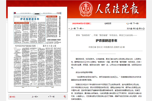《人民法院报》:聚焦“急难愁盼”,开展“惠农暖春”专项活动,黑龙江北安法院—— 护农保耕迎丰年