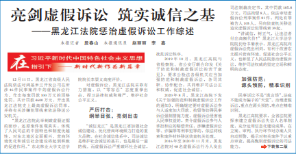 《人民法院报》头版报道黑龙江法院惩治虚假诉讼工作:亮剑虚假诉讼 筑实诚信之基