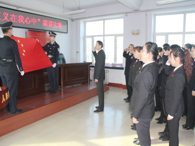 庄严的会议室内,女法官们严阵以待,满面肃穆地望着鲜艳的五星红旗,虎林法院常务副院长褚廷友地带领下,声音高亢,面容虔诚地许下了誓言: “我是中华人民共和国法官,我宣誓:忠于祖国,忠于人民,忠于宪法和法律,忠实履行法官职责,恪守法官职业道德,遵守法官行为规范,公正司法,廉洁司法,为民司法,为维护社会公平正义而奋斗!