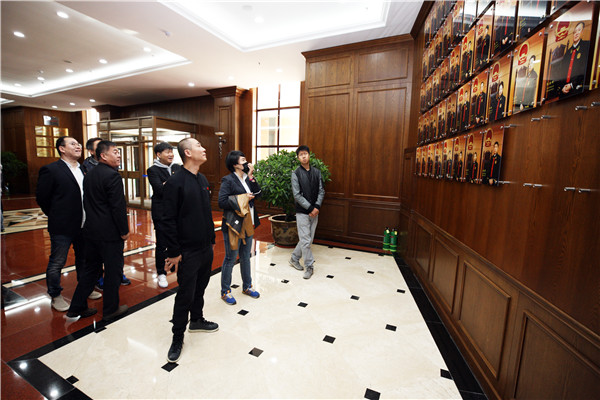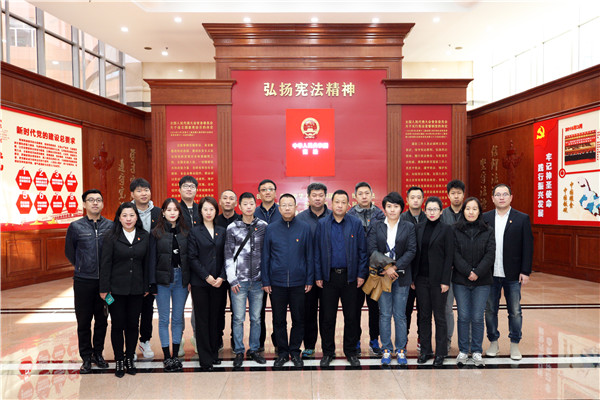 在党建大厅,大家饶有兴趣地参观了党建工作展墙、黑龙江四种精神展板和宪法宣誓墙,并在大厅中央合影留念。
