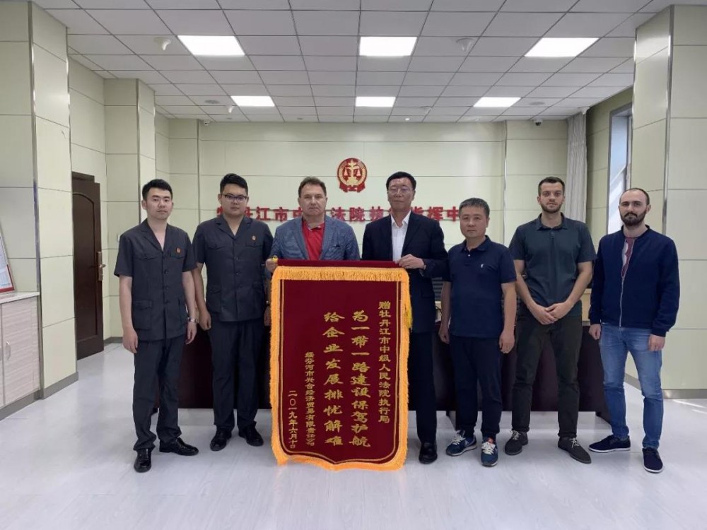 6月11日,牡丹江中院成功执结了一起涉外执行案件,被执行人绥芬河某经贸公司送来锦旗,对执行干警严格执法、规范办案表示敬佩和感谢。