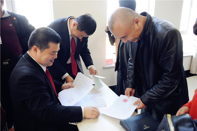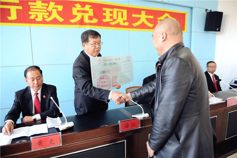 当齐齐哈尔市市区农村信用合作联社铁锋信用社等5名执行申请人从中院党组成员、副院长徐江、执行局局长杨兴义等手中接过执行款支票时,喜悦之情溢于言表。