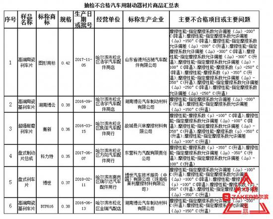 车主注意了,去汽配城换制动器衬片千万别买到不合格商品。近期,哈市市场监管局对市区内销售的汽车用制动器衬片商品进行质量抽检,结果显示,“ 浩宇 ” 等5家汽配店销售的6批次制动器衬片不合格,不合格项目主要为摩擦性能。车用制动器衬片摩擦性能不合格易对车辆构成安全隐患。