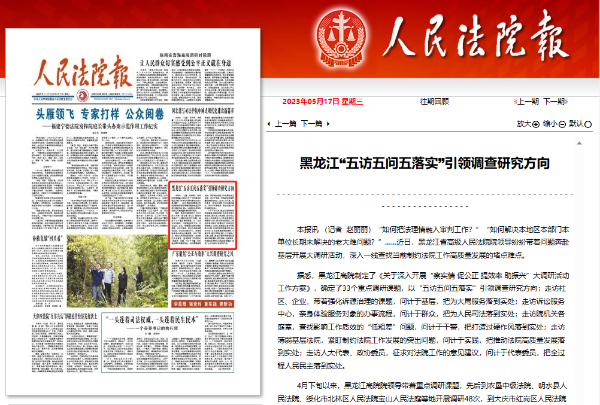 《人民法院报》头版报道:黑龙江“五访五问五落实”引领调查研究方向