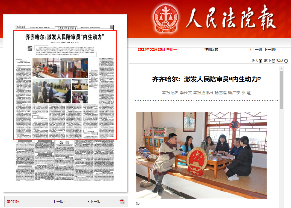 《人民法院报》整版报道齐齐哈尔法院:激发人民陪审员“内生动力”