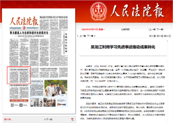 《人民法院报》:黑龙江利用学习先进事迹推动成果转化