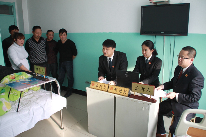 12月22日,因被告人田力国股骨头坏死,行动不便且在术前急需输液,拜泉县人民法院刑事审判庭的年轻干警们走进病房,组建临时法庭,审理被告人田力国危险驾驶罪一案。