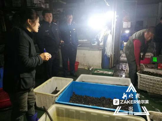 当晚,市林业局联合市场监督管理局和市森林公安局对该市场进行了联合执法检查,现场查获三家业户在批发黑龙江林蛙(俗称哈士蟆)。