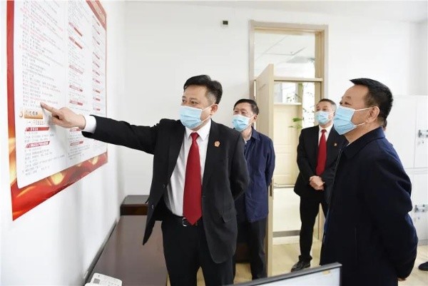 在市法院党组书记、院长毕同春,党组副书记、副院长李国军,党组成员、副院长杨兴义等陪同下,王金会一行实地查看了市法院队伍教育整顿的宣传图板和专班工作场所,观看了市法院在全省率先开发建设的暂予监外执行案件管理平台的操作演示,检查了相关材料卷宗,详细了解了全市法院学习教育环节工作成绩和查纠整改环节工作安排。