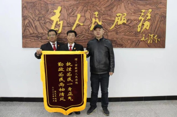 4月6日上午,侯某向诺敏河人民法院民事审判庭干警送上一面写有“执法为民一身正气,勤政为民两袖清风” 的锦旗,对他们促成一起民间借贷纠纷和解表示感谢,并送上感谢信。