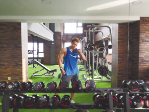 本版图片由梁佳男提供 梁佳男在健身房内。